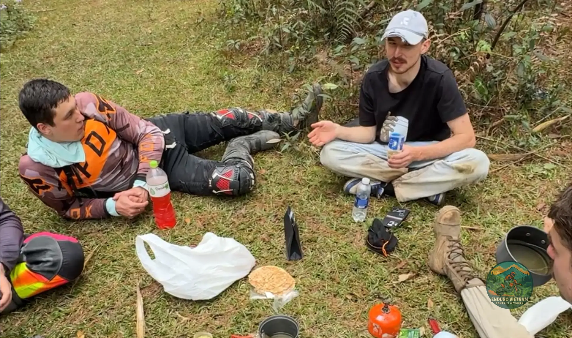 We went on a bike ride with some guys from Kazakhstan to Suoi Vang, 20 km from Da Lat, through pine forests and hills! We had a picnic by the water, drinking coffee from local plantations and enjoying the stunning views. The guys with moped experience quickly mastered the enduro, learning how to use the clutch, throttle, and trails. Within a couple of hours, they became confident riders!
